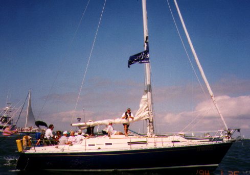 St. Bart's arranged for all those without boats to be able to go into the harbor to watch the start of the race. We were aboard Mike and Lynn Jared's Lagoon, "Dreamweaver," and they were most gracious hosts.